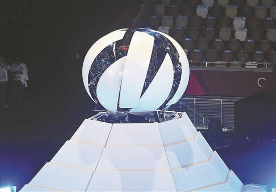 东京奥运会主火炬塔顶部的球型装置缓缓合拢