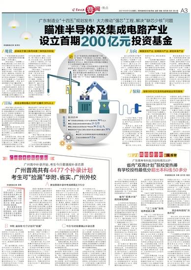 发布会上,吴东文表示,省财政“十四五”期间计划安排约500亿元用于支持先进制造业项目的落地,同时,大力推动实施广东“强芯”工程和“铸魂”工程。完善制造业重大项目“一库多群”,对339个在库投资10亿元以上制造业项目强化跟踪服务。