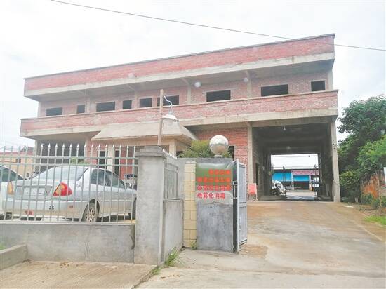7月29日,记者来到梅州兴宁刁坊镇某坊屠宰场,只见屠宰场周边围起围墙,生产车间、办公场所等一应俱全,其中屠宰场后部新建了一处建筑,还设有“生猪车辆进厂消毒池”。随后,记者来到宁中镇某塘屠宰场,该场内建有一栋两层建筑,外墙没有装修,处于在建状态。