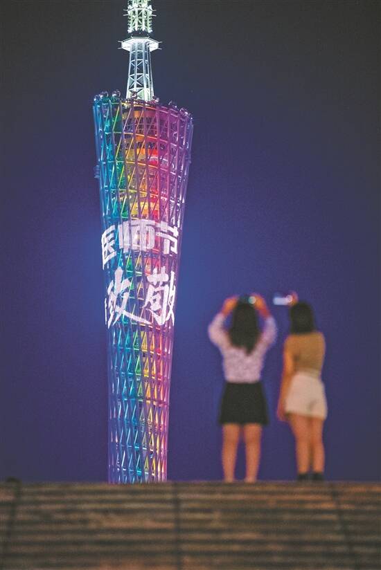 19日晚,广州塔亮灯致敬中国医师 羊城晚报记者 梁喻 摄