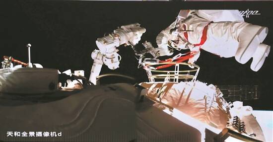据中国载人航天工程办公室消息,北京时间2021年8月20日8时38分,航天员聂海胜成功开启天和核心舱节点舱出舱舱门,截至10时12分,航天员聂海胜 、航天员刘伯明身着中国自主研制的新一代“飞天”舱外航天服,已先后从天和核心舱节点舱成功出舱,并已完成在机械臂上安装脚限位器和舱外工作台等工作,后续将在机械臂支持下,相互配合开展空间站舱外有关设备组装等作业。期间,在舱内的航天员汤洪波配合支持两名出舱航天员开展舱外操作。
