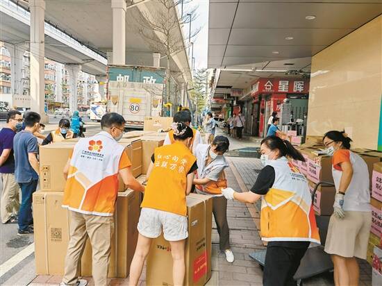 今年5月,广州市社会组织联合会的工作人员调配各会员单位募集的社区急需防疫物资 通讯员供图