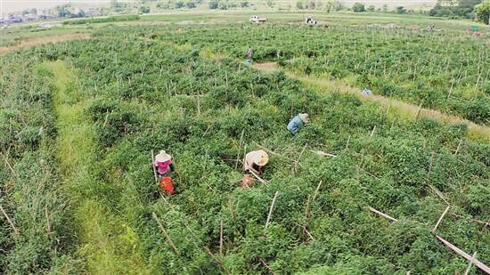 记者了解到,长市村辣椒种植基地是2020年长市村通过流转土地,引进一家农业企业开发经营起来的。今年,基地还建起了现代育苗场,完善了水肥一体化等农业设施,扩大了种植规模,畅通了销售渠道,产出的辣椒在珠三角等地区市场供不应求。
