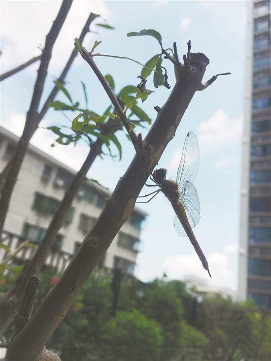 生活在钢筋水泥城市里,很久没能见到蜻蜓这种小精灵,今天可以这么近距离地拍到它,说明我们的生活环境越来越好,才会有这种人与自然和谐相处的美好景象!
