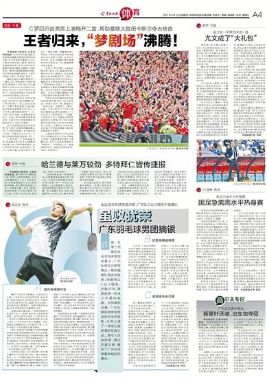 上演惊艳表现的C罗也兴奋不已,他赛后在自己的社交媒体上写道:“我重返曼联只是为了提醒大家,为什么这座球场被称为‘梦剧场’。对我来说,它一直是神奇的地方,是能让你倾其所有、实现一切的地方。”