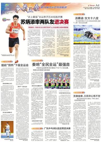 昨日,第十四届全运会田径比赛拉开大幕。在昨天上午男子百米短跑预赛中,广东名将苏炳添以10秒23、预赛总成绩第二名晋级;在昨晚进行的复赛中,他跑出10秒06、以复赛第一名的成绩晋级决赛。
