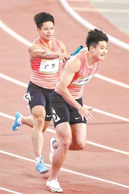 苏炳添(左)突然参加男子4×200米决赛 羊城晚报特派陕西记者 梁喻 摄