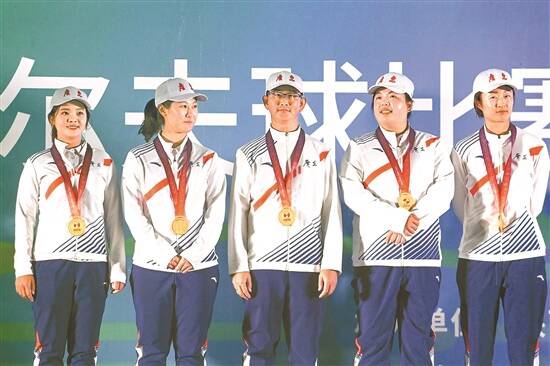 决赛日,西安的雨一直没停过,但天气未能阻挡林希妤夺冠的步伐,她以领先第二名7杆的巨大优势,毫无悬念地夺得女子个人项目金牌。她还和队友冯珊珊、刘钰、张维维携手以11杆的优势夺得女团金牌。