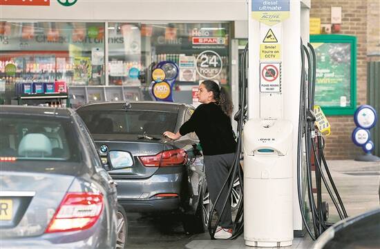 27日,一名女子在英国伦敦一家加油站加油 新华社发