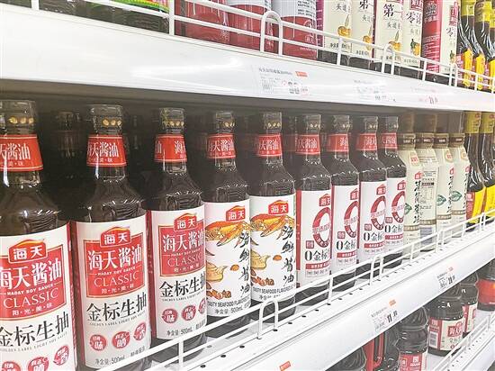 近日,记者走访广州一些商超发现,调味品货架主要为海天、味事达、李锦记这三大品牌所占据,但海天的展柜面积明显大于其他品牌,品种也更为丰富,主打产品为金标生抽和味极鲜,也有高端品类如即简裸酱油、清简酱油。以500ml瓶装的规格为例,海天经典品类价格约为9元左右,味极鲜价格更低,假设终端价格上涨15%,则经典品类提价接近1.35元。
