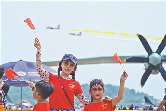 珠海市民何女士称,在航展现场感受到了浓浓的国庆氛围,“特意带了孩子过来看航展,希望他能感受到祖国的发展,能更热爱祖国。”参展商戴先生称,公众日观众非常多,看到许多家长都带孩子来参观学习并进行爱国教育,“感觉他们很棒,这样度过国庆很有意义。”