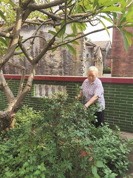 沉淀着一代红色精神的故居,庄严而肃穆。谭惠芳打开了“咿呀”作响的木门,随后,进深12.3米直筒单间结构展露眼前,谭惠芳习以为常地拿起了扫帚,不疾不徐地清扫红砖,把房间间隔层、木家私等一一摆整齐、抹干净。除此以外,故居小花园也是谭惠芳最操心的地方,每隔三五天,她就守在这里,除草、修剪枝叶、种植小花,把已凋谢的玫瑰花焚烧,作为花圃里的肥料,让花草明年长势更好。