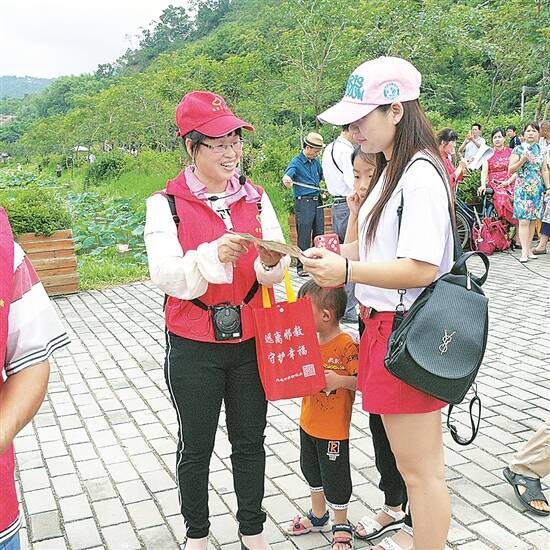 邓秀坚(左一)参加志愿服务
