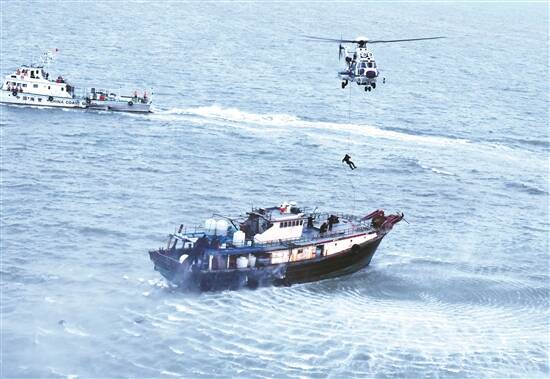 粤港联合执法行动中,特警空中索降 景国民 摄