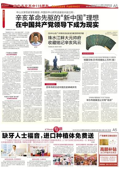 1997年,广州依托广州大元帅府旧址建立孙中山大元帅府纪念馆。孙中山大元帅府纪念馆文物保护管理部副主任曾舒慧介绍,该纪念馆是孙中山两次在广东建立政权的所在地。辛亥革命未完成的理想与目标,孙中山与他的革命同行者在这里继续为之奋斗。该纪念馆同时也是孙中山和众多辛亥革命先驱的重要纪念地,收藏的珍贵文物中有部分与辛亥革命人物及事件息息相关。