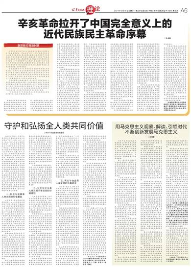 习近平总书记10月9日上午在纪念辛亥革命110周年大会上发表重要讲话。讲话站在“两个一百年”的历史交汇点上,站在中华民族伟大复兴的历史高度上,系统阐明了辛亥革命伟大的历史贡献和历史意义,回顾总结了中国共产党继承孙中山先生革命事业、团结带领人民不懈奋斗的光辉历程,宣示了坚持一个中国原则和“九二共识”、坚决遏制“台独”分裂活动、捍卫国家主权和领土完整的坚强决心与坚定意志,总结了辛亥革命带给中国人民的五点历史启示,思想非常深刻,非常有理论深度,非常有说服力。