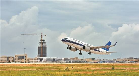 昨日,南航空客320客机在湛江吴川机场起飞 羊城晚报记者 袁增伟 摄