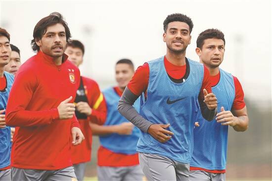 在广州队早已经成功“连线”的阿兰(右二)与艾克森(右一) 图/视觉中国