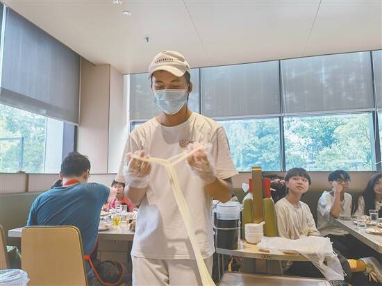 海底捞工作人员为顾客表演“捞派捞面”