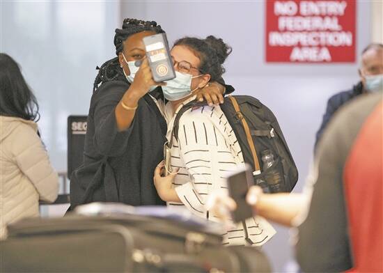 爱人亲吻、祖孙相拥……随着美国政府8日放宽入境限制,多地机场和水陆口岸上演一幕幕被新冠疫情阻隔的亲人久别重逢的感人场景。