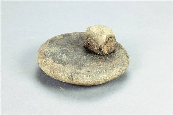 南越文王墓出土了3块石砚、4块研石以及4000多粒墨丸。墨丸出土时成堆散落在地面,有的墨丸上粘附木胎残片及少许漆皮,可知原盛于一个木胎漆盒内。墨丸色泽黑中微泛红,质地细腻,呈小圆饼形。从外形观察,其制作应该是将糊状原料随意滴聚成型,故大小不一。