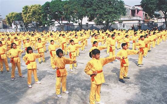除了教授年轻人,我还将蔡李佛拳带进了学校,教学生们练习简单的套路,把一些动作改编成广播体操,让更多年轻人体会蔡李佛拳的独特魅力和精神内涵。现在蔡李佛拳已经走进新会当地十多所学校。