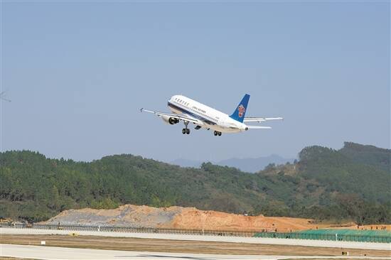 今天上午11时25分,南航CZ8902航班从韶关丹霞机场起飞 羊城晚报记者 林桂炎 摄
