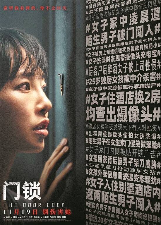 密码锁上混乱的指纹、沾上水渍的卷纸,消失的冰箱食物……《门锁》前半部用种种悬疑感十足的细节,让观众代入了独居者方卉的惶恐不安。这正是影片反复营销的立意:关注独居女性安全问题。主演白百何本人也曾在接受采访时提及自己在接到剧本后,曾关注过相关数据:中国2021年独居人口约9200万,其中40%左右是女性。她还曾表示,希望观众把这部《门锁》看成“独居安全指南”。