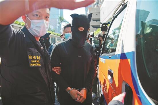 11月28日,澳门特区政府司法警察局人员押送一名嫌犯 新华社发
