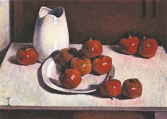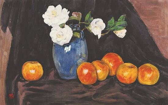 《茶花橙子》 王肇民 1960年 35.4×55.8 水彩 广州艺术博物院藏