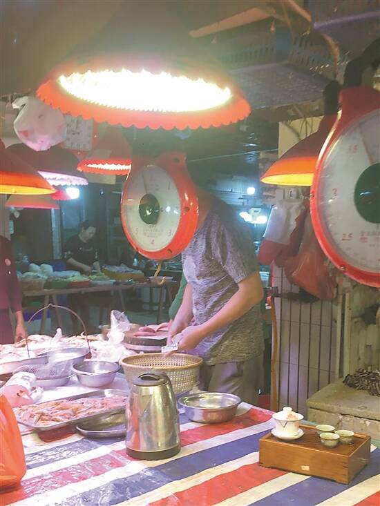 喝茶可以说是潮汕人生活中的一种常态,是习惯,也是必须!即便是在菜市场,只要有固定摊位,无论是卖肉的还是卖鱼的,都会在某个角落里摆放着一套比较简单的工夫茶具。如图,就是我早上到市场卖菜的时候随手拍的照片。