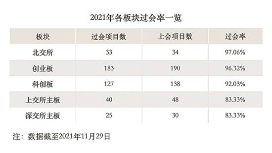 科创板和创业板今年IPO发行热度不减,今年向创业板发起冲刺的拟上市公司有190家,过会率高达96.32%;“闯关”科创板的公司次之,为138家,过会率也达到92.03%;相形之下,沪深主板IPO过会率则偏低,两者均为83.33%。