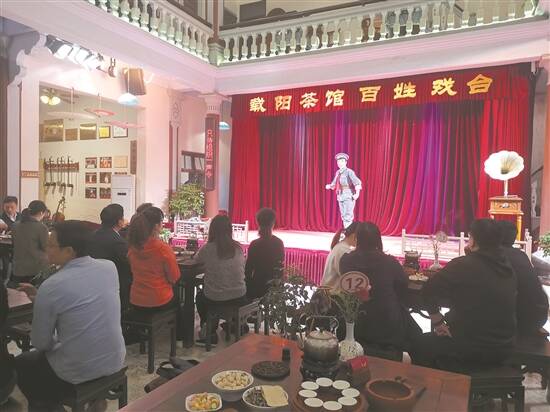 在潮州古城,游客正观看潮剧名家演出