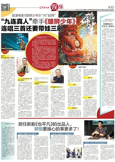 《雄狮少年》究竟有什么魅力,让首批观众成为“自来水”,让九连真人“奉上”代表作?这天,影片监制张苗、导演孙海鹏、片尾曲主唱九连乐队接受了记者采访,畅谈他们心中的动画梦和国潮情。
