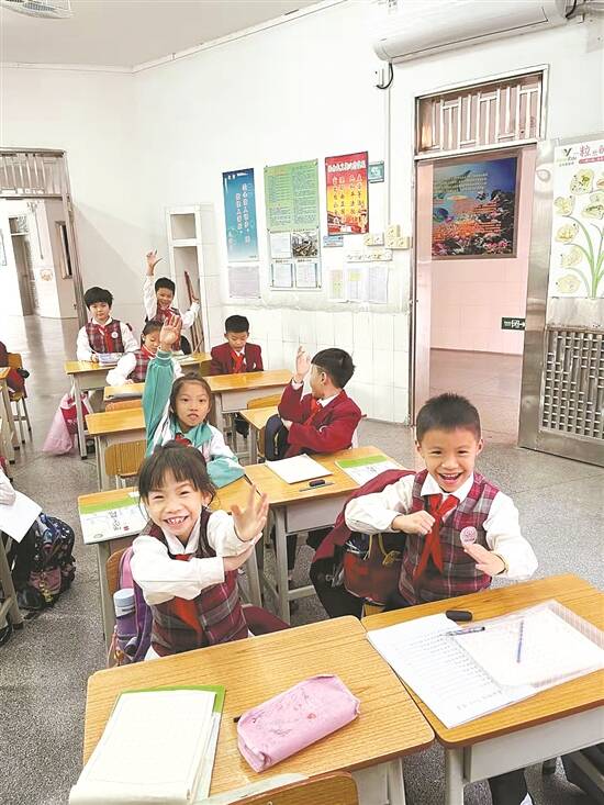 马务小学学生在课后服务的课堂上积极回答问题