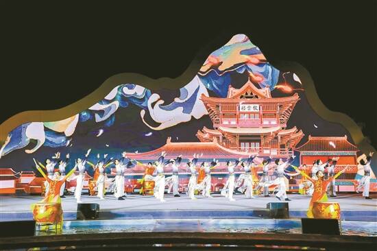 整场实景演出约60分钟,岭南舞狮、武术表演、情景说唱、芭蕾舞等表演引人入胜。据悉,本届旅游文化节以“活力广东·多彩肇庆”为主题,除了开幕式及综艺晚会,还有2021年两广城市文化和旅游合作(肇庆)联席会议等五大主题活动。与此同时,肇庆各县(市、区)也将配合推出丰富多彩的旅游文化活动。