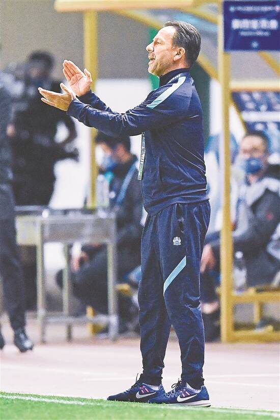 广州城队前两轮一分未得、一球未进,第三轮遇到过去12年仅胜一次的北京队,赛前并不被看好。主教练范加斯特(见图,新华社发)变阵应战,采用三中卫体系,王华鹏和胡睿宝边路策应,杨笑天站到并不熟悉的中场,与陈俊乐、张功搭档。这样的阵容开场不久就带来惊喜:卡尔多纳、张功先后在第3分钟和第8分钟建功;对手大举反攻,蒂亚戈在第37分钟反越位成功单刀破门,提前“杀死”了比赛。广州城队的进球并没有在下半场停止,第62分钟杨笑天搏得点球,卡尔多纳梅开二度,第81分钟蒂亚戈也打进个人第二球。