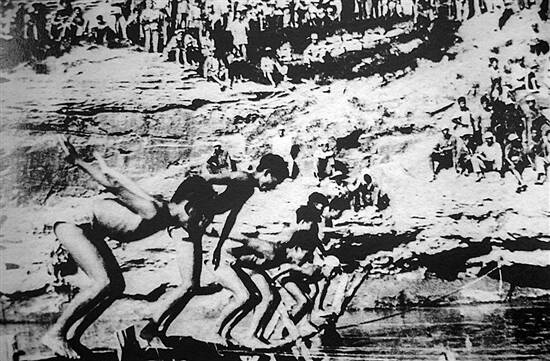 1942年延安“九一”扩大运动会中的游泳比赛 陕西体育博物馆供图