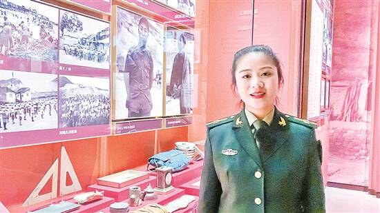延安革命纪念馆讲解员张持在馆内向羊城晚报记者讲述“九一”扩大运动会的故事