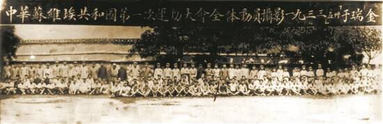 1933年中华苏维埃共和国“五卅”体育运动大会全体运动员合影 瑞金中央革命根据地历史博物馆供图