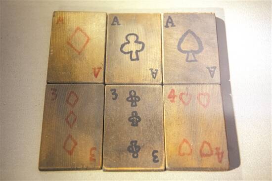 抗大学员自制的木质扑克牌,中国人民抗日军政大学纪念馆藏