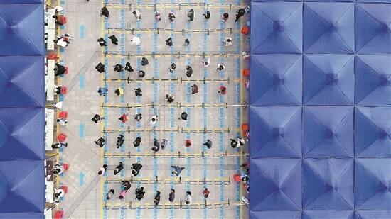 昨日,东莞多个镇街开展新一轮大规模核酸检测 羊城晚报记者 余宝珠 通讯员 清溪宣 摄