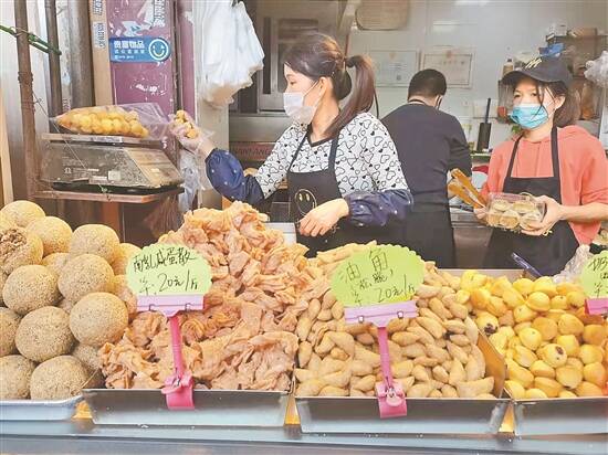 除了藏于老城街巷间的旧时味道,广州多家酒店、超市也在春节前推出年货礼盒,用另一种方式留存年味。1月2日,记者在华润万家超市看见,除了坚果、饼干等年货外,真空包装的煎堆、酥角、冬瓜糖等广府特色年货也已上架,吸引不少市民选购。“真空包装的货品存放时间更长,这两年我们经常买。”顾客李女士告诉羊城晚报记者。