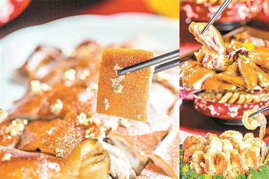 盆满钵满迎新春,合家美味享团圆。精选13道食材的金玉满堂盆菜,为您的团圆家宴增添一份上佳风味。十全十美的辽参、黑沙翅、大连鲍、竹节虾、鹅掌、花胶等陪伴您与家人度过美满的新年。