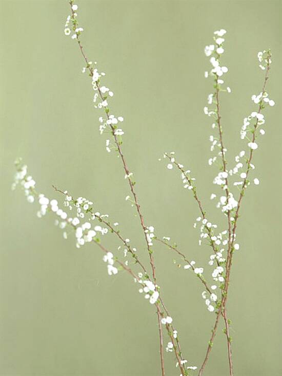 干枝雪柳是木犀科雪柳属植物,叶形似柳,开花季节白花满枝,犹如覆雪,故称之为雪柳。干枝雪柳很好养,水培就可以大量开花,一周给它换一次水,不用施肥,也不需要晒太阳。小白花聚成圆锥花序布满枝头,气味幽香。但雪柳通常是在夏季开花,冬天在室内水培的话,需要保持温度高一些,一般20℃以上最佳,最冷不能低于15℃。雪柳花期长,花谢后还可以晾干花枝做成干花,性价比很高。雪柳还具有一定滞尘抗烟和降低噪声功能,很适合室内净化空气。