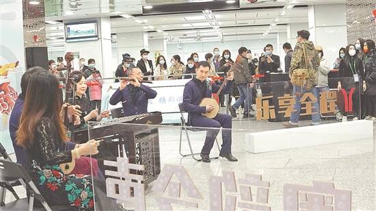 广东民乐进地铁的首场演出活动现场
