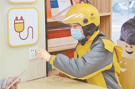 快递小哥在驿站充电