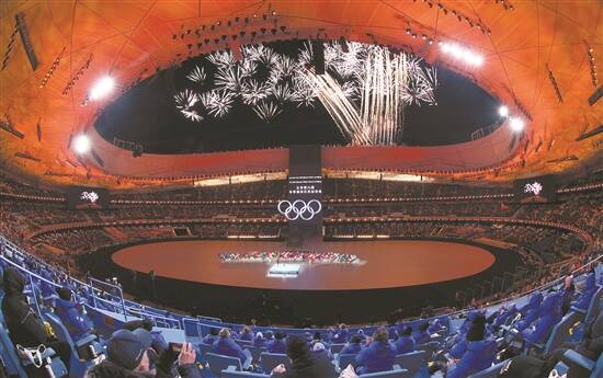 音乐声中,空中“雪花”飘。今夜,花火照亮璀璨星河,世界同庆奥林匹克。