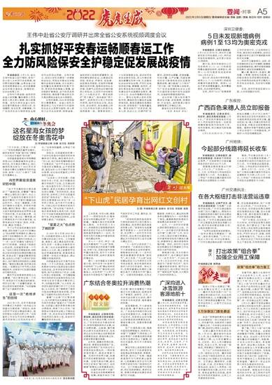羊城晚报讯 记者黎存根、黄宙辉,通讯员粤文旅宣报道:前天,北京冬奥会开幕,大年初五,广东各地结合冬奥会的举办,积极挖掘旅游热点主题,拉升消费热潮。近距离、慢节奏的出游方式受游客欢迎,各旅游企业也纷纷推出迎新春旅游消费惠民活动,营造在粤过年、团圆欢聚的喜庆氛围。