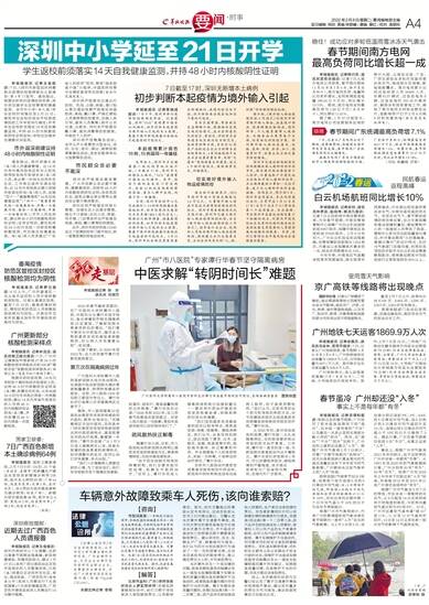 羊城晚报讯 国家卫健委通报,2月7日0时-24时,31个省(自治区、直辖市)和新疆生产建设兵团报告新增确诊病例105例,其中本土病例65例(广西64例,均在百色市;天津1例,在河北区),含4例由无症状感染者转为确诊病例(均在广西)。新增无症状感染者46例,其中本土4例(黑龙江2例,均在黑河市;广西2例,均在百色市)。